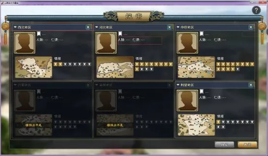 探索是增加玩家对地图的信息力的,游戏里分为6个地区,当玩家占据某个地区的城池之后,就能派人探索这个地区,探索的信息与武将的【人脉】【仁德】有关,探索可以获得大量装备打造材料,酒,玉,书等宝物。探索最关键的事能探索到在野武将,在野武将可以通过登庸变为玩家手下的将领。玩家一开始,探索这一项必须做,这是武将来源的基础,除了主动投靠的,所有在野武将都是需要探索出来的,一探索出来就要立马派人前去登庸,不然会被AI捷足先登。武将是玩家前期发展的基础,武将数量多,任务才能转动起来。