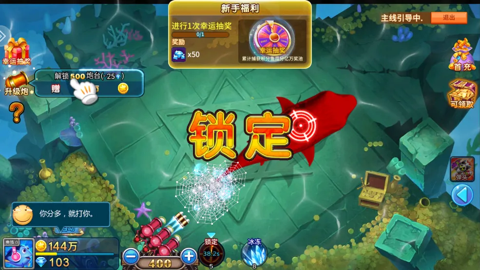 1、点击屏幕可以向鱼开炮。